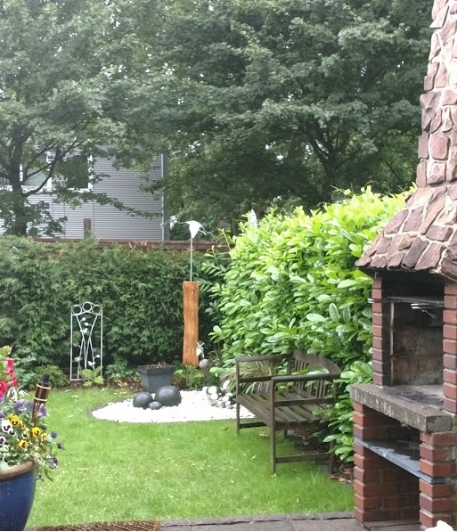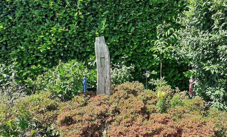 Eine Skyline-Stele in einem Garten in Kevelaer |